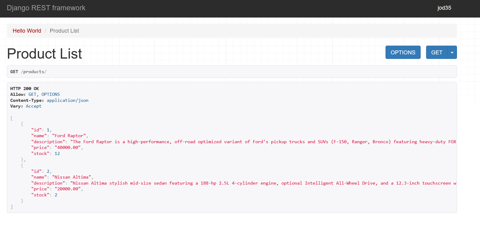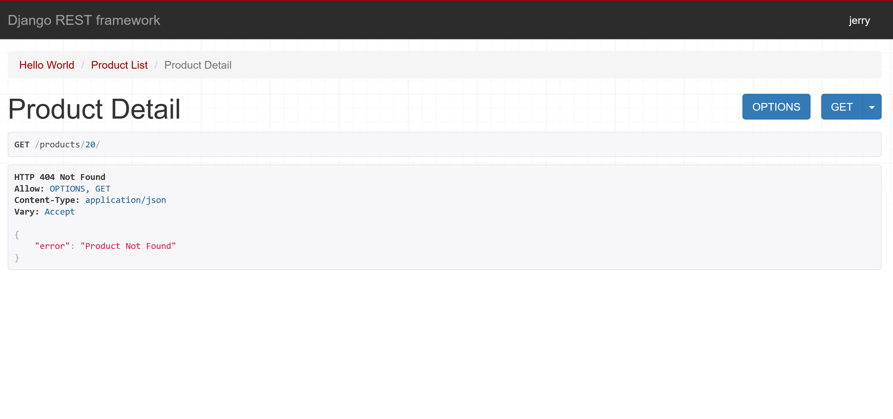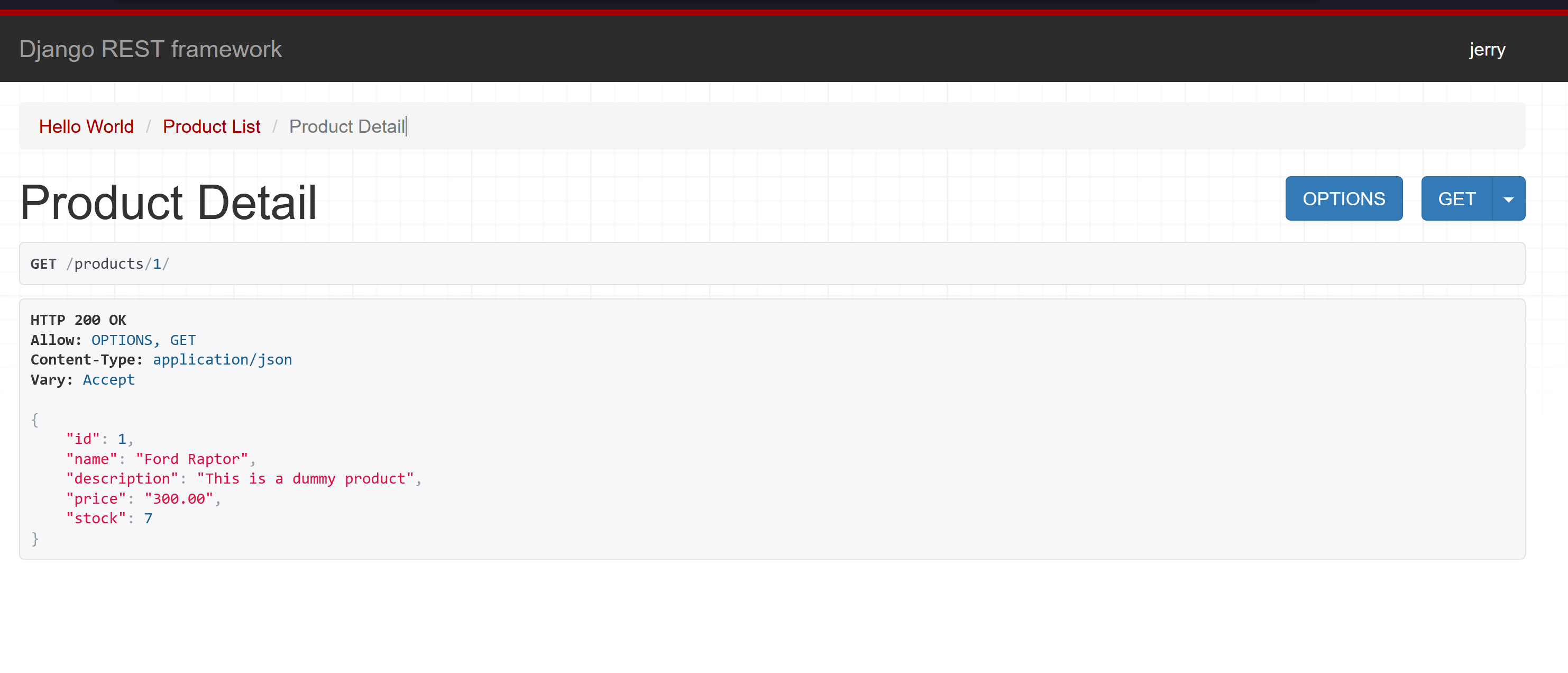 To test this endpoint, navigate to http://localhost:8000/api/products/1: