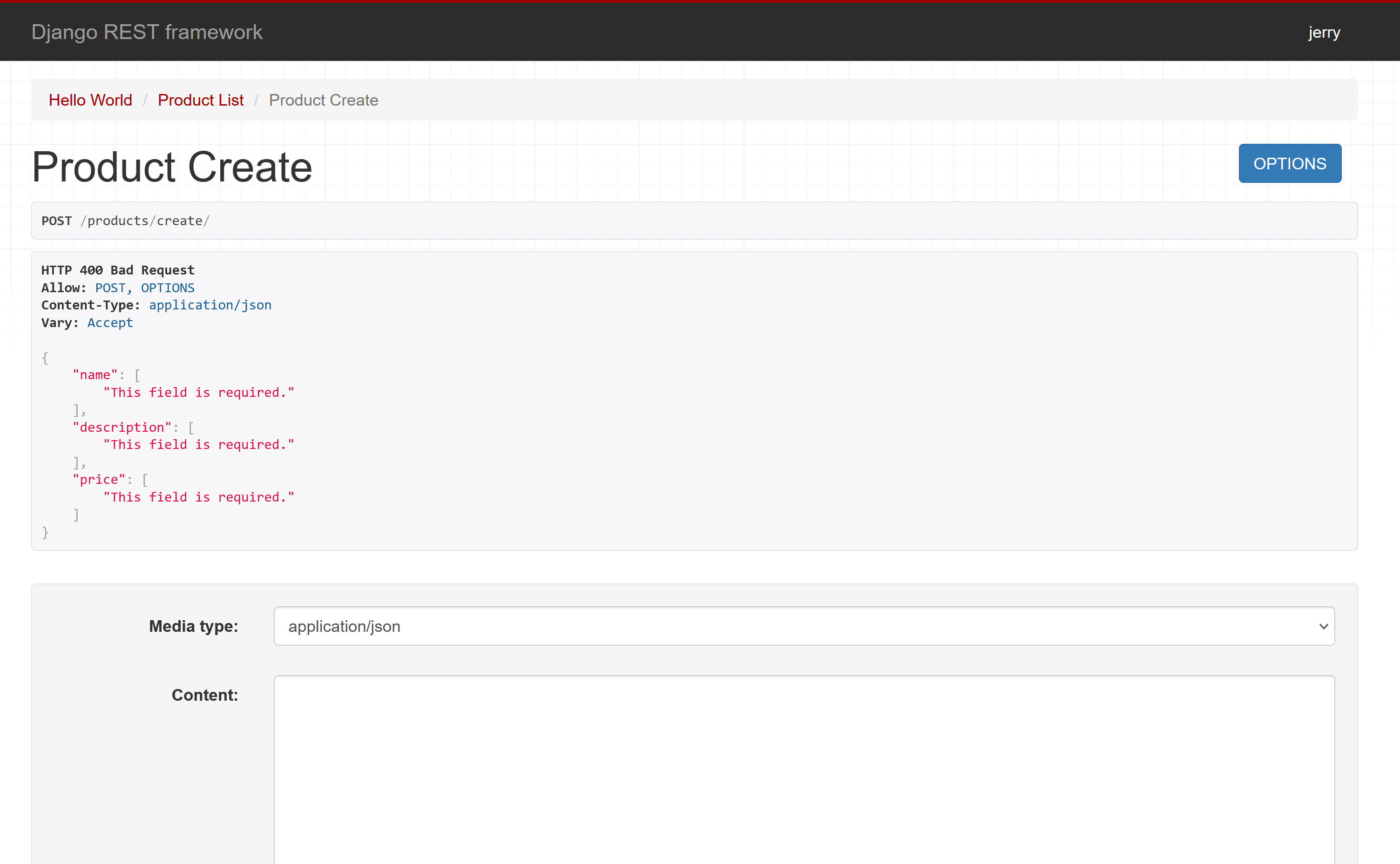 Django REST Framework provides a user-friendly interface for testing API endpoints. If you submit invalid data, you'll see validation errors: