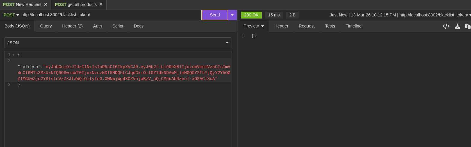 Token Blacklisting: For enhanced security, refresh tokens can be "blacklisted." This is essential for logout functionality or for revoking access if an account is compromised, ensuring that once a token is blacklisted, it can no longer be used to generate new access tokens.