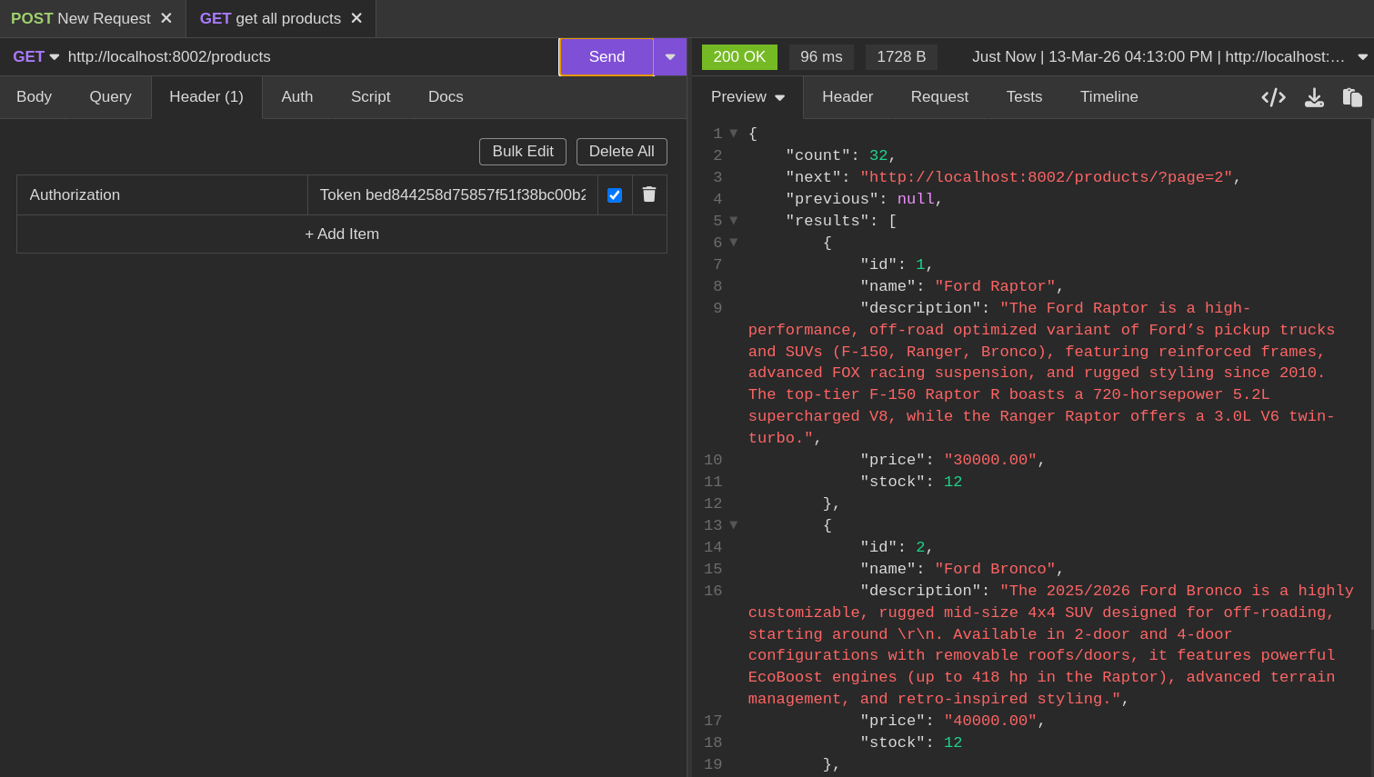 TokenAuthentication. This ensures that for every incoming request, the framework attempts to validate the credentials against the database's token records. - Token Generation: Each user requires a unique token. These can be generated manually via the command-line interface.